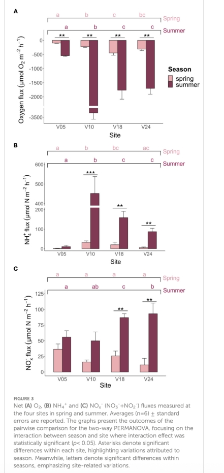 氧氣消耗速率:夏季(-3345 μmol/m2/h)比春季(-447 μmol/m2/h)高7倍
