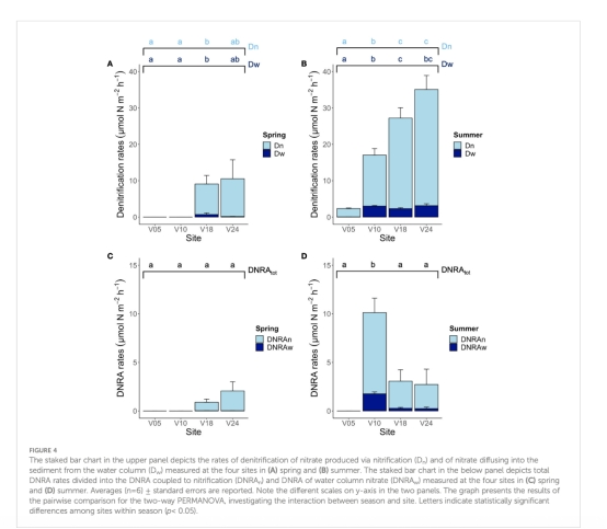 DNRA僅在夏季顯著增加,最高貢獻(xiàn)率達(dá)37%(站點(diǎn)V10)