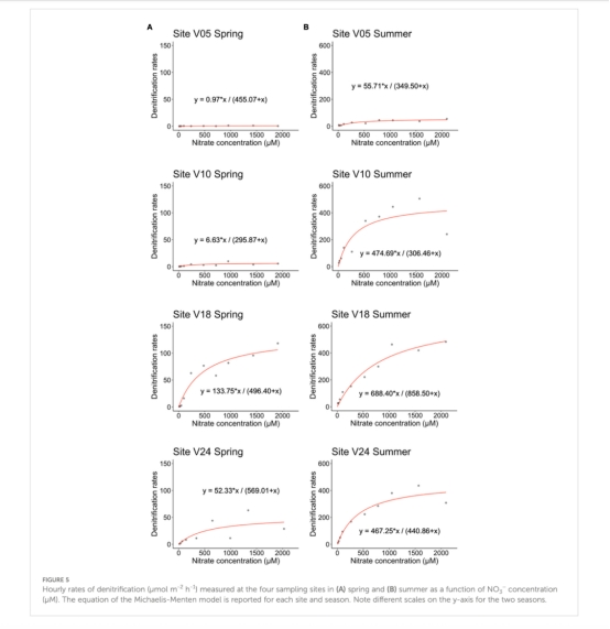 反硝化總量:夏季(35 μmol/m2/h)>春季(10 μmol/m2/h)