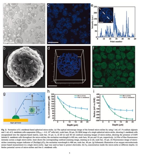 氧氣濃度分布(圖2h):使用丹麥Unisense微電極測量微生態(tài)位內(nèi)部的氧氣濃度,發(fā)現(xiàn)25μm深度處氧氣濃度趨近于零,表明內(nèi)部形成缺氧環(huán)境,激活了氫酶活性。