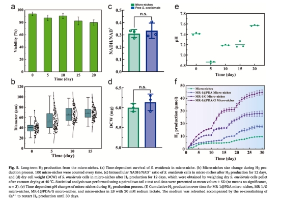 該微環(huán)境生物相容性優(yōu)異,支持S. oneidensis持續(xù)產(chǎn)氫30天,為微生物-非生物雜化系統(tǒng)在綠色生物制造中的應(yīng)用提供了新策略。