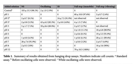 MTB在不同pH梯度下的運(yùn)動(dòng)方向(NS/SS)、振蕩頻率、停止行為(表1)。