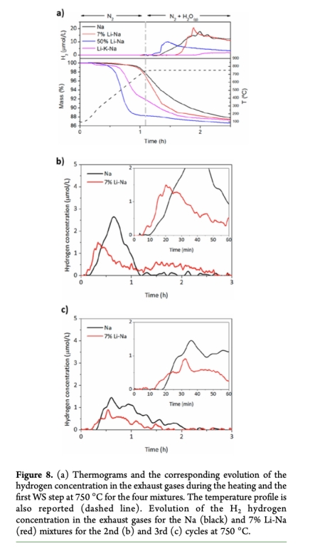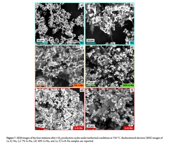 動力學(xué)分析:通過氫氣釋放時間曲線(如7% Li-Na在第二/三循環(huán)中氫峰前移,圖8b-c),揭示熔融碳酸鹽促進(jìn)離子擴(kuò)散的瞬態(tài)效應(yīng)。