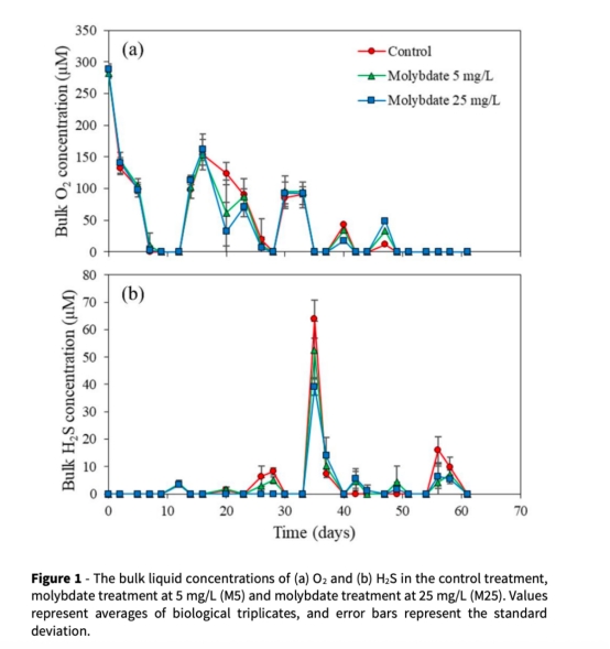H?S濃度(圖1b、3):量化鉬酸鹽對(duì)水體及沉積物中H?S生成的抑制效果,明確處理組與對(duì)照組的差異。