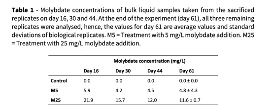 單次添加鉬酸鹽可維持61天的抑制效果,殘留鉬酸鹽持續(xù)存在(表1),證明其作為長(zhǎng)效策略的潛力。