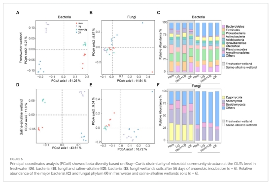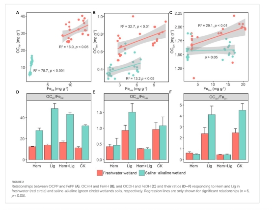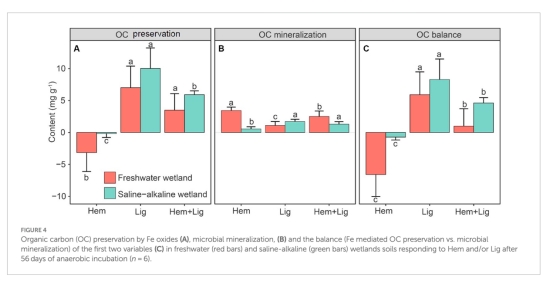 碳保存與礦化平衡:Lig通過(guò)形成Fe-OC實(shí)現(xiàn)凈碳積累,Hem則因改變微生物群落導(dǎo)致碳損失(圖4)。