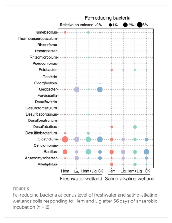 數(shù)據(jù)意義:Hem抑制淡水濕地Fe(III)還原菌活性(如Geobacter),但通過(guò)富集放線(xiàn)菌(Actinobacteria)和厚壁菌(Firmicutes)增強(qiáng)CO?排放(FW-Hem累積排放最高)。