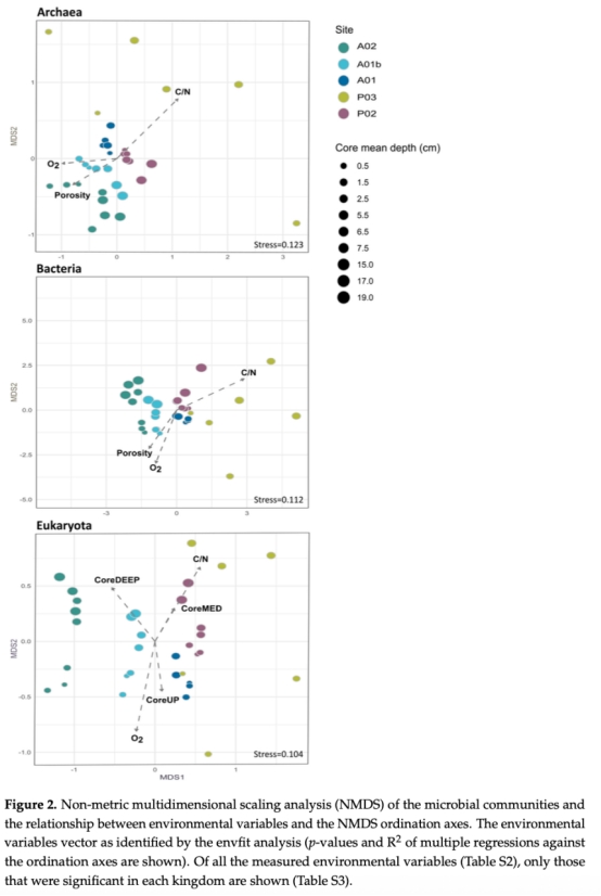 站點位置和核心深度是微生物群落結(jié)構(gòu)的主要驅(qū)動因素,分別解釋33%-49%和11%-14%的變異。