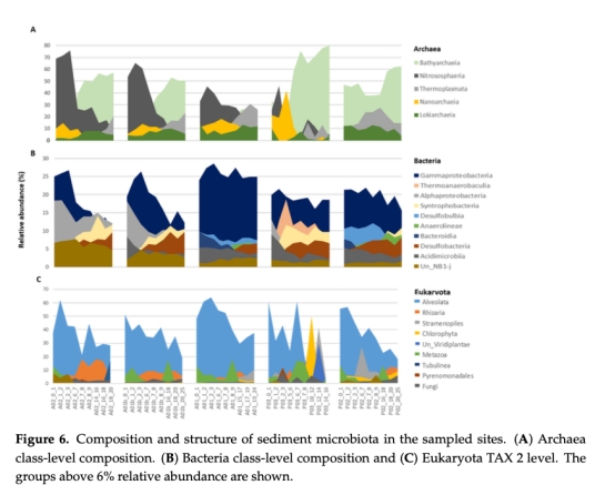 古菌中的Nitrososphaeria(氨氧化古菌)在缺氧沉積物中仍占優(yōu)勢,可能具有非典型代謝功能。