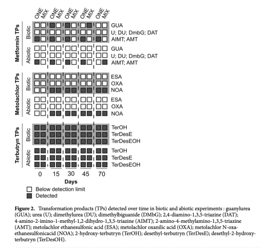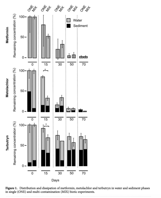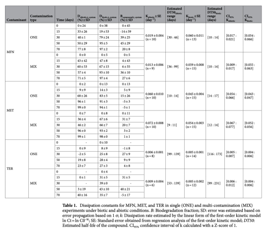 二甲雙胍和異丙甲草胺的生物降解主導(dǎo)其消散,而特丁津依賴(lài)非生物過(guò)程。