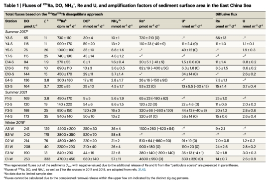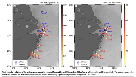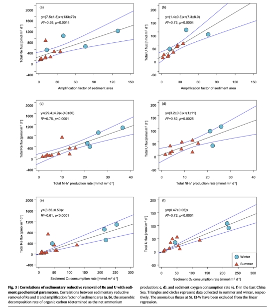 大陸架沉積物Re/U還原去除通量與有機碳分解速率直接相關(guān),冬季強混合促進通量提升3-4倍(表1對比夏冬季數(shù)據(jù))。