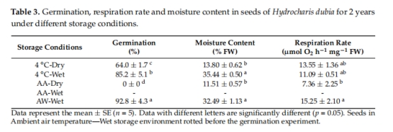 Germination Requirement and Suitable Storage Method of Hydrocharis dubia Seeds