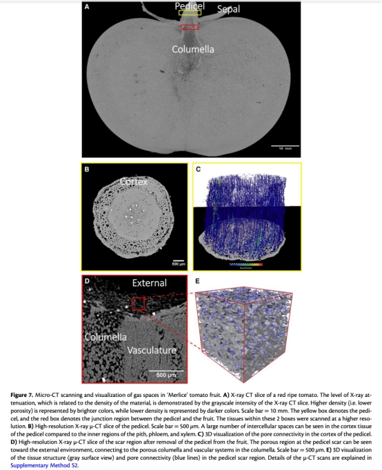 MRI和micro-CT成像數(shù)據(jù)(圖3、7):獲取果實三維結構和組織孔隙度。意義:構建幾何模型并量化擴散阻力。