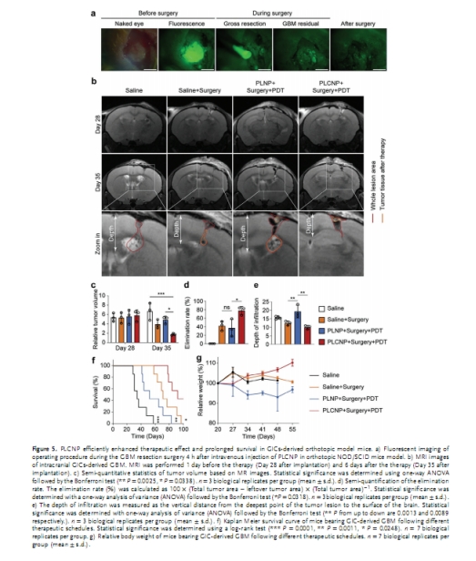 總結(jié):PLCNP通過整合靶向遞送、熒光引導(dǎo)和氧生成功能,為GBM的精準(zhǔn)切除和術(shù)后殘留清除提供了創(chuàng)新解決方案,具有重要臨床轉(zhuǎn)化價值。