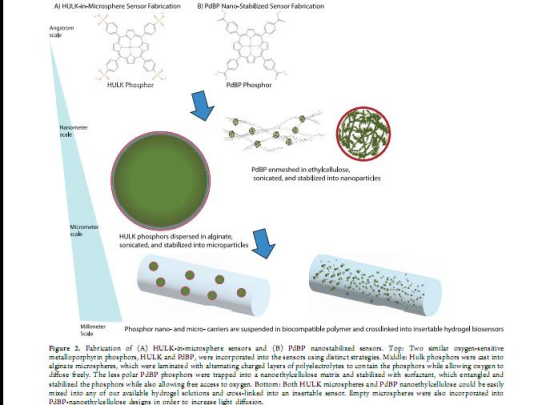 使用兩種氧敏感磷光體(HULK和PdBP),分別通過微球封裝(HULK-in-microspheres)和納米纖維網絡穩(wěn)定(PdBP-in-nanoethylcellulose)。