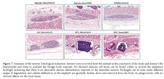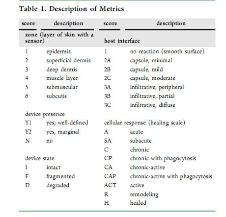 評估傳感器的生物相容性、降解狀態(tài)和宿主反應(圖7、表1-3)。