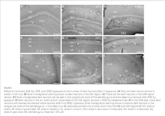 形態(tài)學(xué):短期高氧(尤其是100% O2)導(dǎo)致海馬門區(qū)和CA3區(qū)神經(jīng)元損傷。