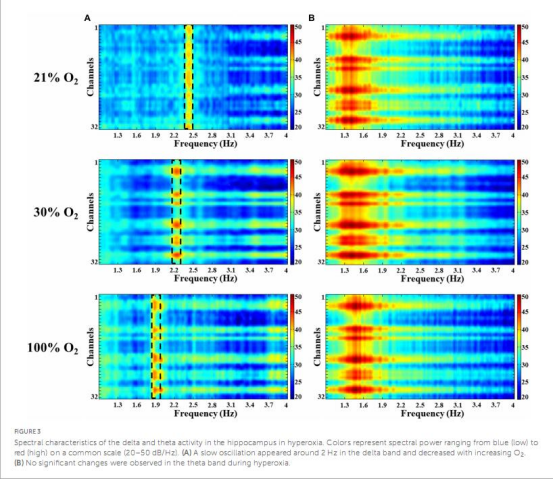 數(shù)據(jù)證實吸入氧濃度與腦組織氧分壓呈正相關(guān),為后續(xù)電生理和形態(tài)學(xué)結(jié)果提供直接環(huán)境證據(jù)(如delta頻率變化與氧分壓升高相關(guān))。