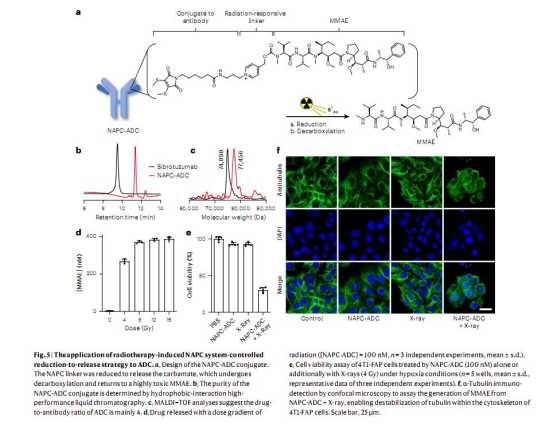 ADC構(gòu)建:將NAP保護(hù)基整合到靶向FAP的ADC中(sibrotuzumab-NAPC-MMAE),通過放療激活釋放毒素MMAE(圖5-6)。