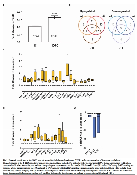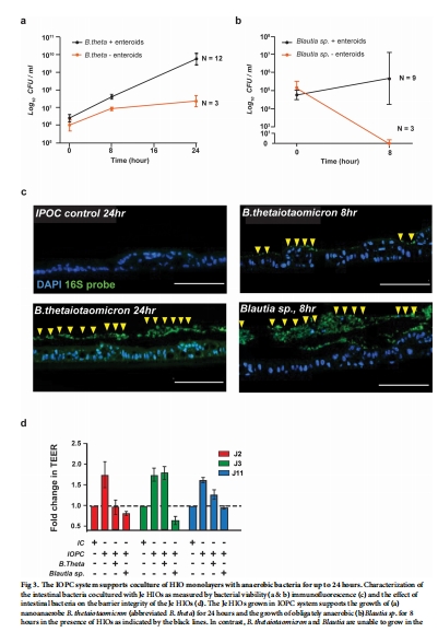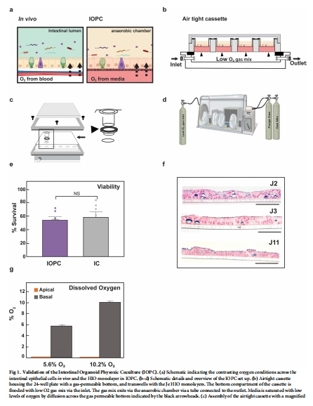論文開發(fā)了一種名為 IOPC(Intestinal Organoid Physoxic Coculture) 的新型培養(yǎng)系統(tǒng),用于在生理氧條件下共培養(yǎng)人腸道類器官(HIOs)與厭氧腸道細(xì)菌。該系統(tǒng)通過模擬腸道上皮的氧梯度(頂端厭氧、基底側(cè)生理性低氧),成功支持了如 Bacteroides thetaiotaomicron(耐低氧)和 Blautia sp.(嚴(yán)格厭氧)等腸道菌的存活,并揭示了宿主-微生物互作對(duì)腸道屏障功能、基因表達(dá)和免疫調(diào)節(jié)的影響。