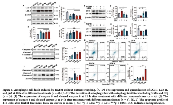 細(xì)胞攝取(圖3A-D)、凋亡(圖5K-L)及關(guān)鍵蛋白(LC3-II/p62, SIRT-4/HIF-1α)。