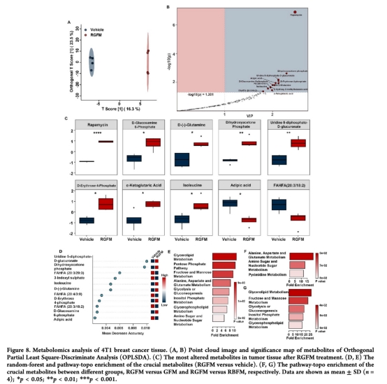 分析代謝組學(xué)變化(圖8)和關(guān)鍵蛋白表達(dá)(圖7)。