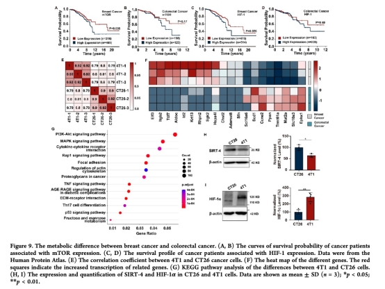 意義:乳腺癌比結(jié)腸癌更依賴mTOR/HIF-1(圖9A-D),解釋療效差異。