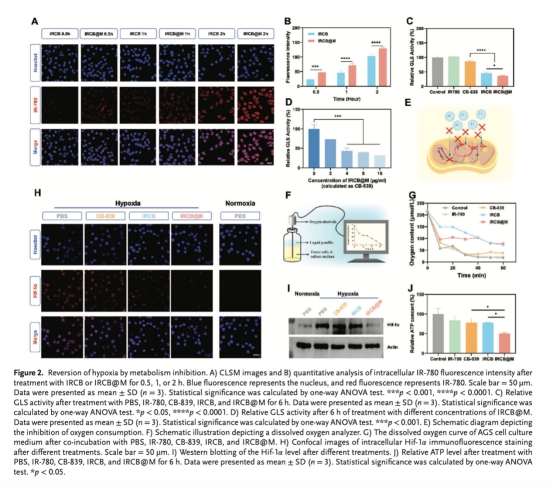 溶解氧實(shí)時(shí)監(jiān)測(cè)(丹麥Unisense電極):IRCB@M處理組氧消耗速率顯著降低(圖2G如下)。