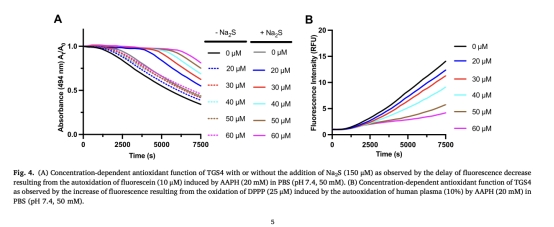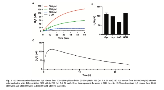 精確動(dòng)力學(xué)解析:揭示TGS4的H?S釋放具有"緩釋"特性(持續(xù)>2小時(shí)),區(qū)別于傳統(tǒng)快速釋放型供體,更貼近生理性H?S生成模式。
