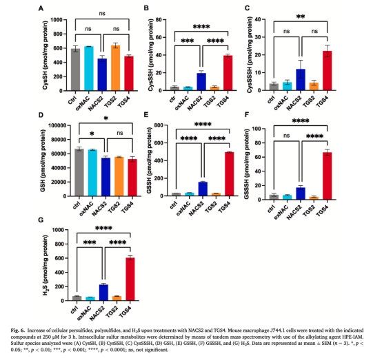 數(shù)據(jù):LC-MS/MS定量分析TGS4處理的細(xì)胞中硫代謝物(如CysSSH、CysSSSH、GSSH、GSSSH、H?S)水平變化。