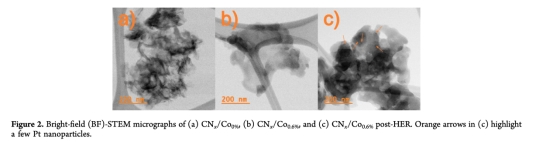 研究意義:確認(rèn)CNx基本結(jié)構(gòu)未被鈷負(fù)載破壞(圖1a);揭示鈷的引入降低了CNx結(jié)晶度(圖1b,);證明鈷以混合價態(tài)(Co2?/Co3?)氧化物形式高度分散在CNx表面;量化實際鈷負(fù)載量;證實HER后鉑成功光沉積及鈷的部分溶出/價態(tài)變化。