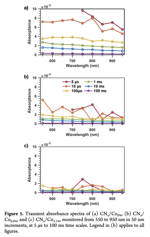 鈷作為氧化助催化劑,在亞納秒時間尺度高效提取空穴,顯著延長光生電荷壽命(微秒-毫秒尺度),促進(jìn)電荷空間分離,是性能提升的關(guān)鍵機(jī)制。