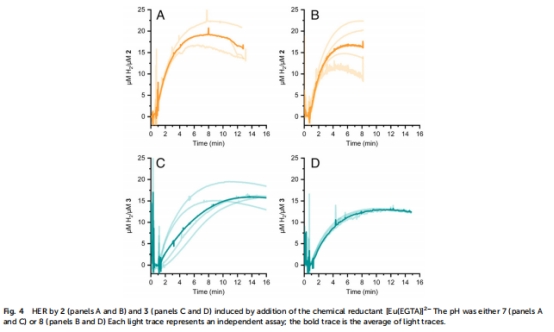 圖4A-D:化學(xué)還原產(chǎn)氫的實(shí)時(shí)動(dòng)力學(xué)曲線(同前)。