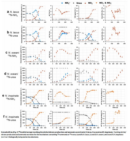 數(shù)據(jù):使用1?NH??和1?N-尿素追蹤β-AOB(N. lacus)的亞硝酸鹽來源。