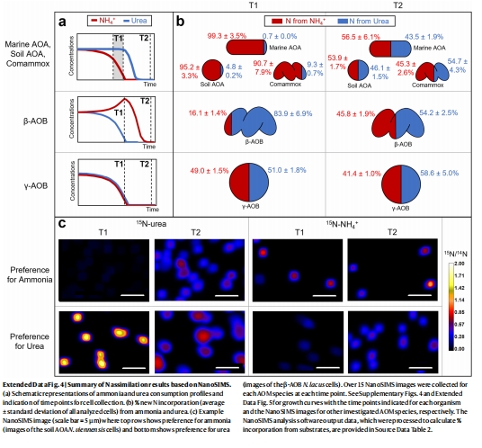 β-AOB同化的氮主要來自尿素(>80%),而非胞外氨(擴(kuò)展數(shù)據(jù)圖4b-c)。