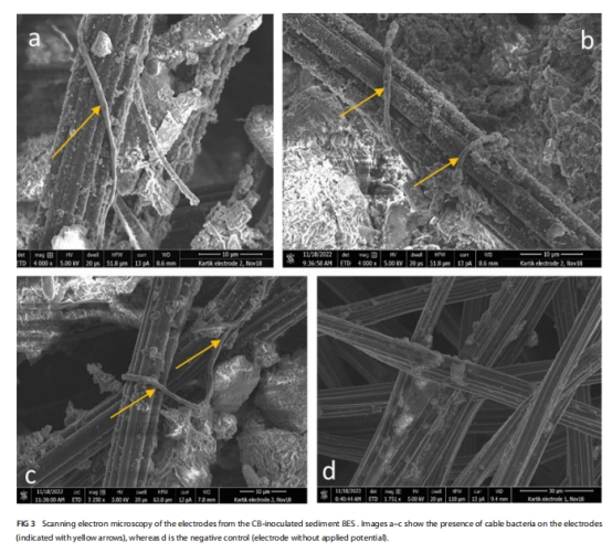 Interaction of living cable bacteria with carbon electrodes in bioelectrochemical systems