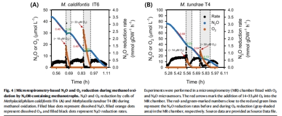 捕捉到CH?氧化過程中O?與N?O的同步消耗(圖5A-B),證明電子傳遞鏈可同時(shí)利用兩種電子受體。