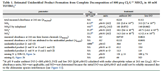 閉合二氯胺分解氮氧質(zhì)量平衡:活性氮種類途徑的最終產(chǎn)物的相對重要性