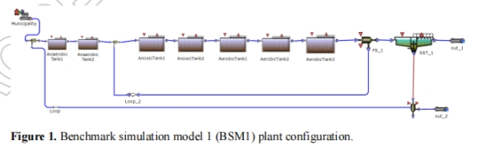 使用BSM1基準(zhǔn)模型(圖1,表2),調(diào)整DO(0–5 g/m3)、池深(1–10 m)、α因子(0.4–1.2)、β因子(0.8–1)、氮負(fù)荷(20–120 mg-N/L)。