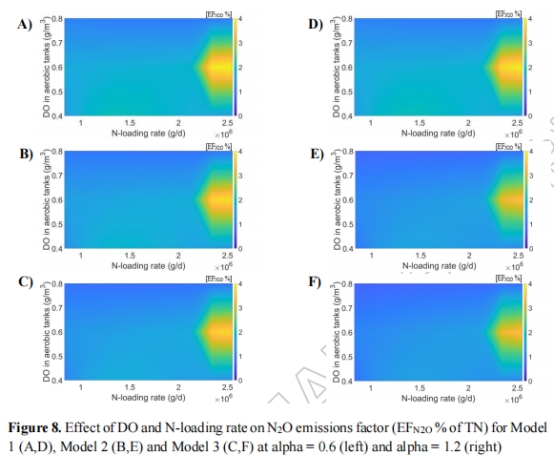 模型選擇顯著影響排放預(yù)測(cè):在溶解氧(DO)為0.6 g/m3時(shí),模型間差異達(dá)10-16%;池深增加時(shí)差異擴(kuò)大至14-26%。
