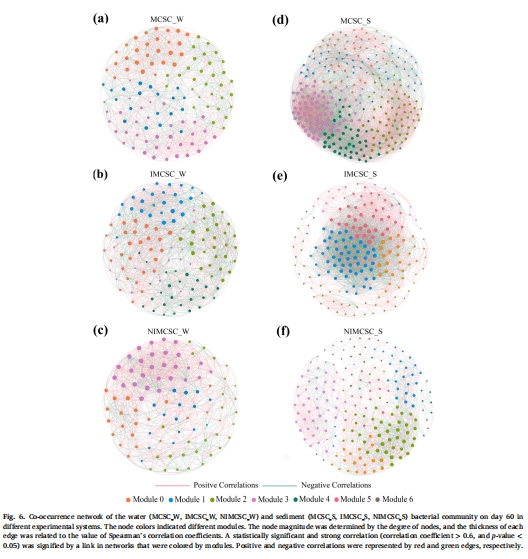 NIMCSC中微生物共生關(guān)系增強(qiáng)(正相關(guān)邊比例高),核心菌屬(Haliangium)主導(dǎo)脫氮。