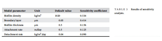 校準(zhǔn)參數(shù):邊界層、生物膜密度、脫落速率等(表4)。