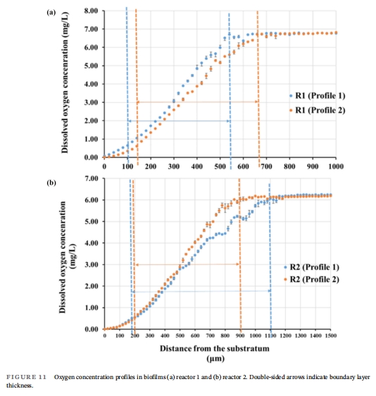 測量方法:丹麥Unisense微電極(步進(jìn)精度20μm)測定生物膜內(nèi)DO梯度。