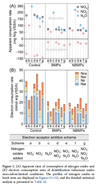 氮氧化物消耗速率 圖1A, 圖S1-S3 量化微塑料對(duì)反硝化速率的抑制程度(BMPs > NBMPs)。
