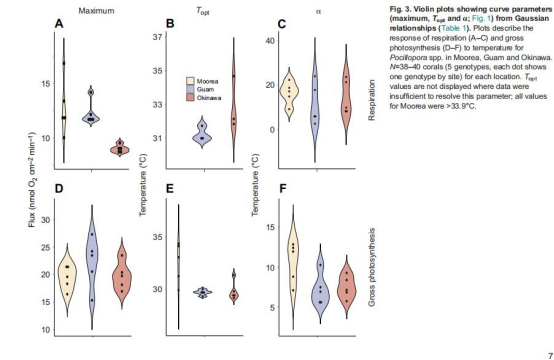 光合速率范圍:Okinawa 5.1–26.1;Guam 11.4–31.9;Moorea 10.6–23.2。