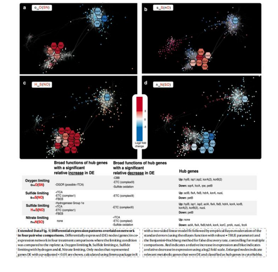 硫代謝基因在限硫/氧時(shí)下調(diào),氫化酶與氮代謝基因上調(diào)(Fig.2b),揭示能量短缺時(shí)的代謝重塑。