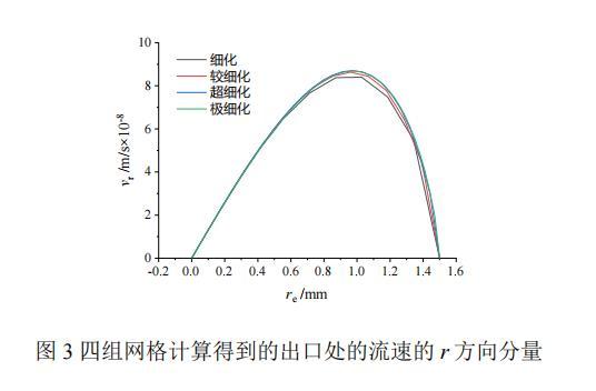 圖3四組網(wǎng)格計(jì)算得到的出口處的流速的r方向分量