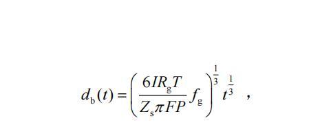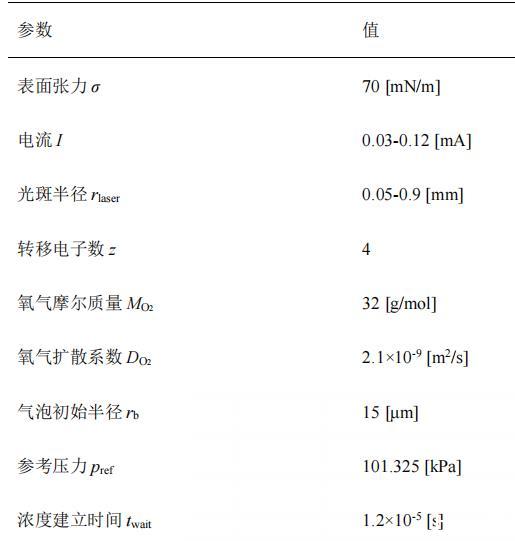 其中,db是氣泡的直徑,ρl是電解液密度,ΔPb表示氣泡內(nèi)部和外部之間的壓力差抵消表面張力后的殘余壓力?;瘜W(xué)反應(yīng)控制階段占據(jù)了氣泡生長過程的絕大部分,這一階段氣泡生長直徑表達(dá)為,,(12)