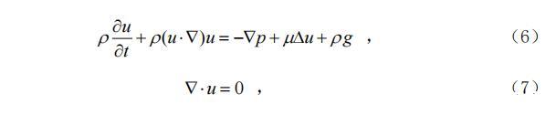其中,ρ是密度,p是壓力,μ是粘度,g是重力加速度。方程的左邊是流體元素的動量變化率,第一個(gè)隨時(shí)間變化的速度項(xiàng),第二個(gè)對流項(xiàng)。方程的右邊是各種力對流體單元的作用,包括壓力項(xiàng)、粘度控制的速度擴(kuò)散項(xiàng)和體力項(xiàng)。