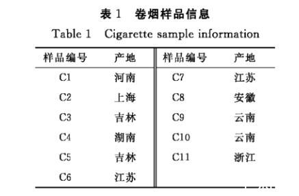 表1卷煙樣品信息